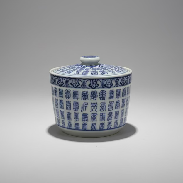 Chinese Blue & White Ceramic Soup Bowl with Lid and Candle