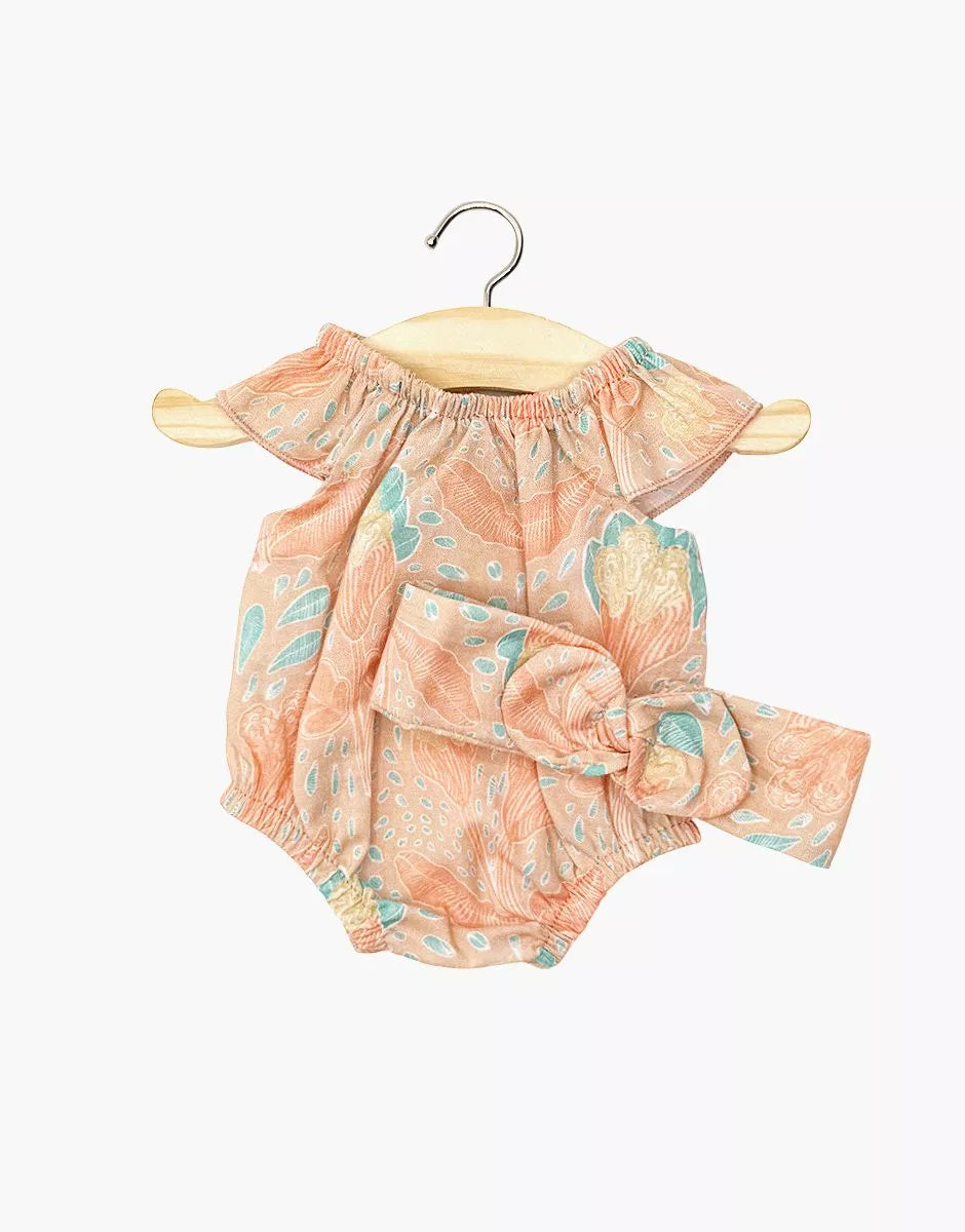 Clara romper and its round cotton bow headband for Minikane Gordis 34 & 37cm dolls.
