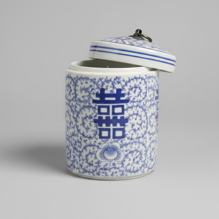 Double Happiness Ceramic Storage Jar with Lid and Candle