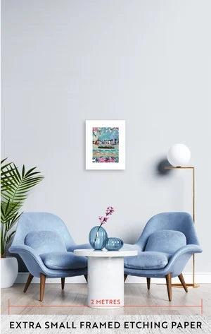 Small / Framed Etching Paper / White Frame